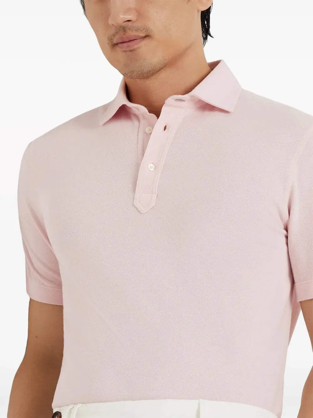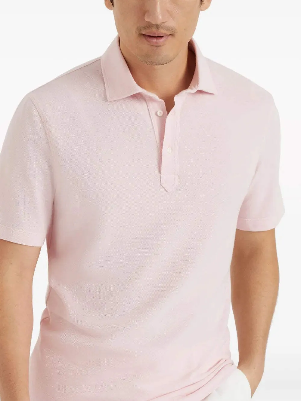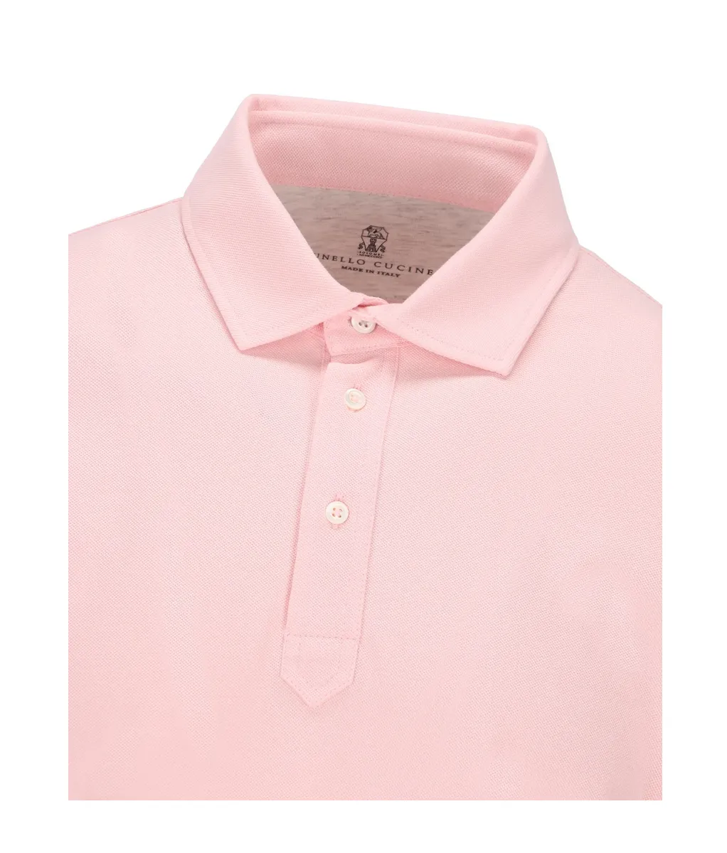 Expertly crafted by luxury brand Brunello Cucinelli, this light pink cotton pique polo shirt combines comfort and style. Made from high-quality materials, it offers a sleek and sophisticated look with its classic design. Perfect for any occasion, this polo shirt is a must-have for the fashion-conscious.