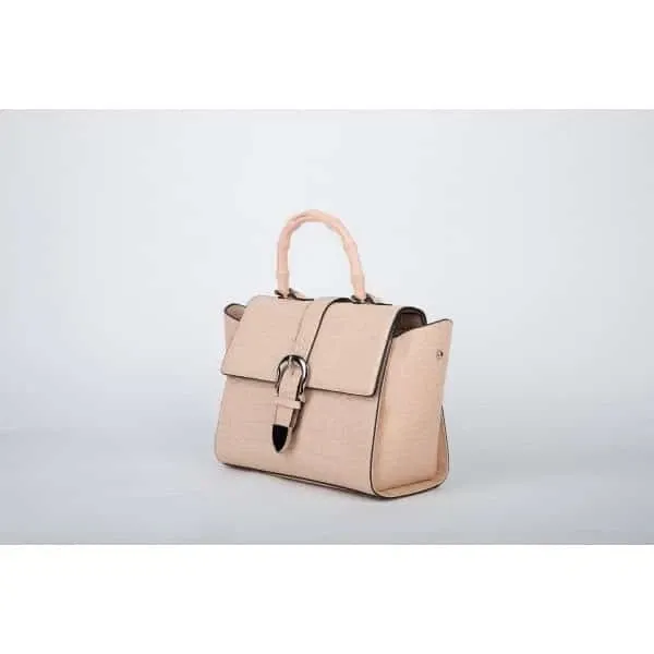 Elevate your everyday elegance with this structured nude pink handbag, designed with a sleek and sophisticated silhouette. Crafted from high-quality faux leather with a refined crocodile-embossed texture, this handbag offers a luxurious appearance without compromising on ethics or durability.