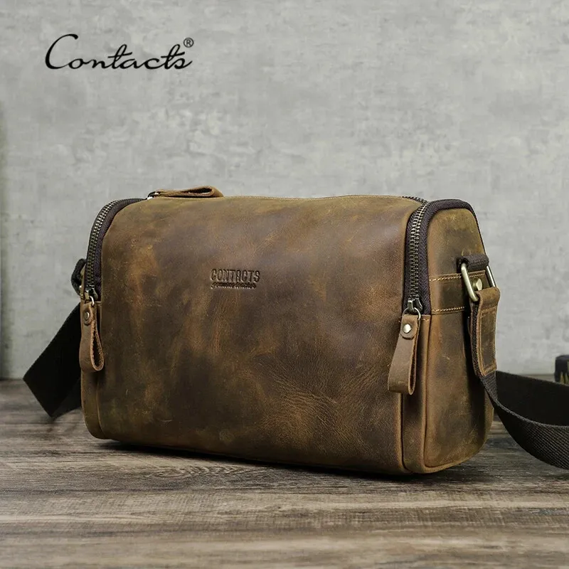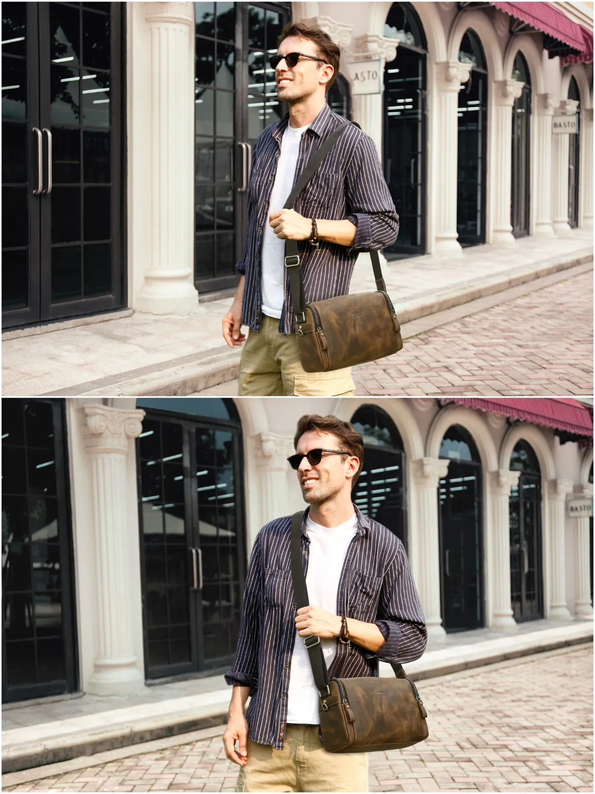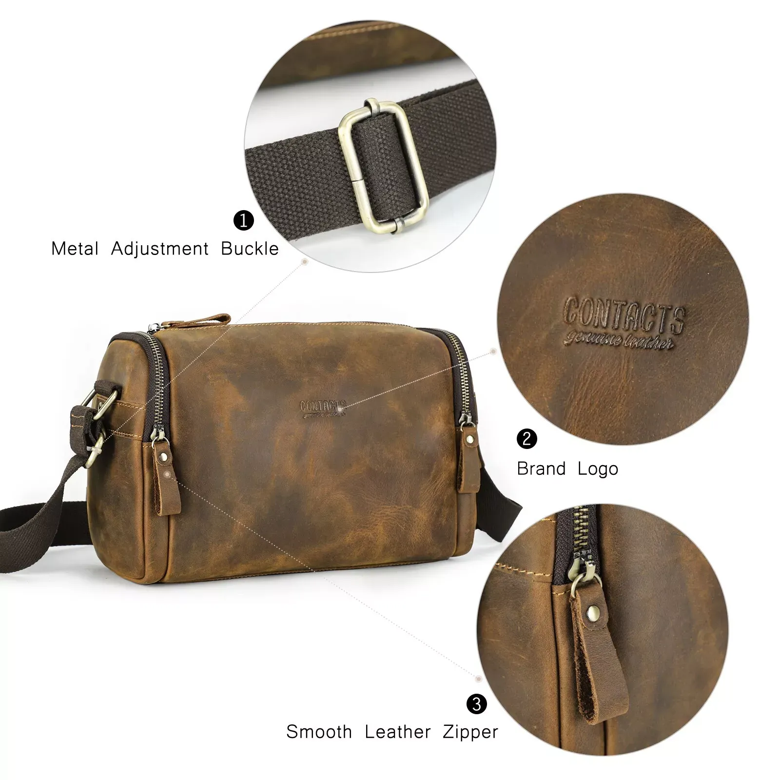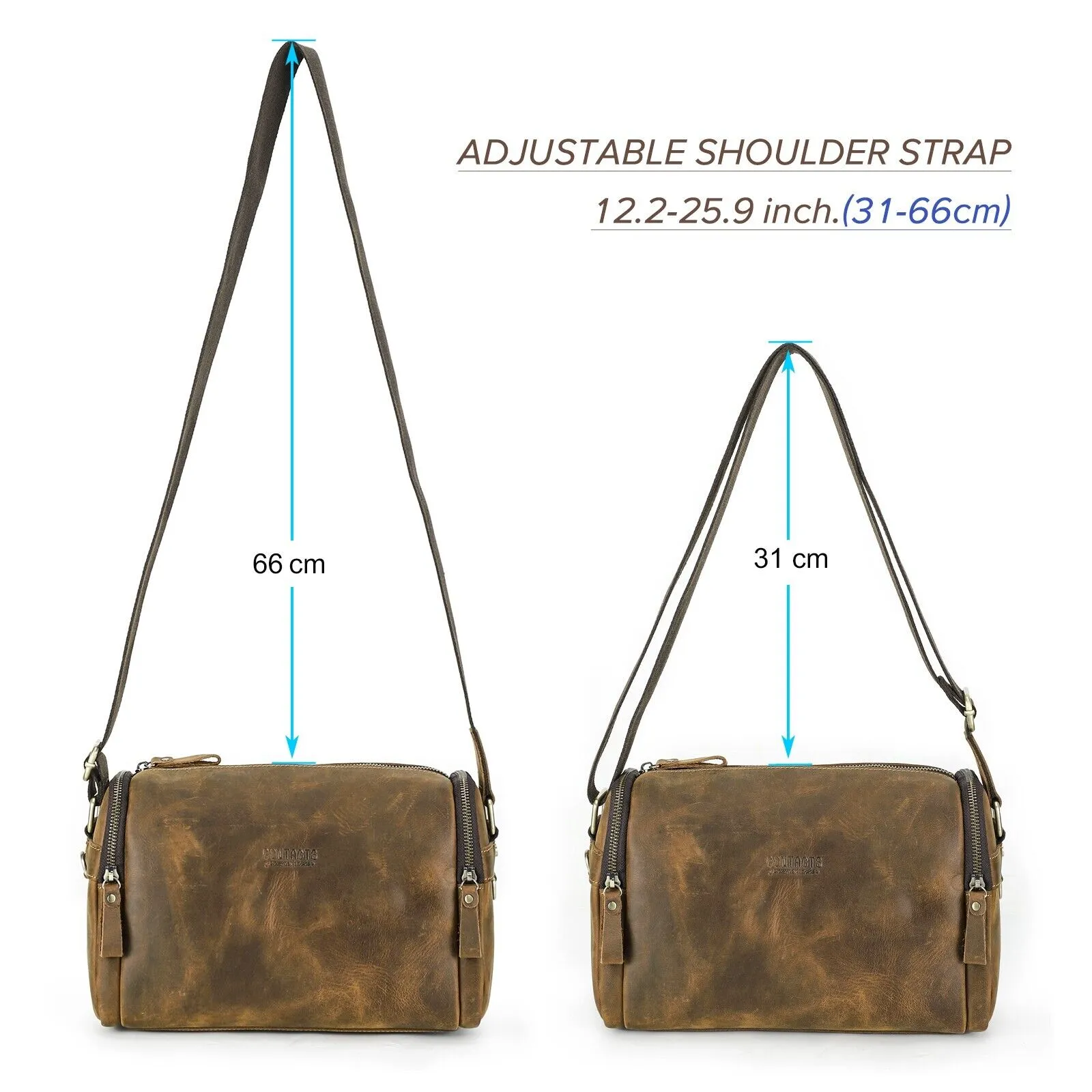 【Product Specifications】Material: shoulder bag was made of crazy horse leather, Waterproof resistant with classic and vintage design. the better the leather surface will look; Size:29x18x11CM; Shoulder strap length: 31~66CM; The leather is soft,because the genuine leather,but be careful not to scratch.