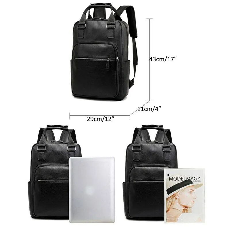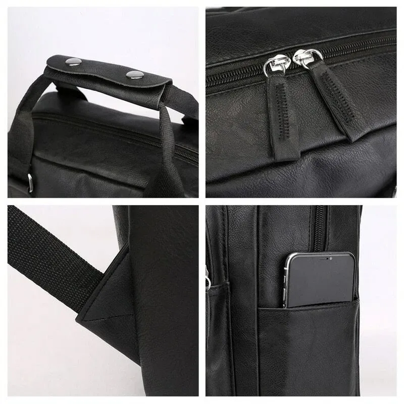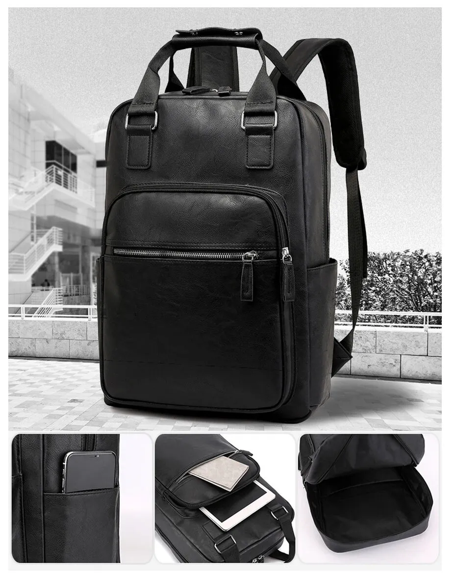 Elevate your everyday look with this sleek and functional black leather backpack, designed for the modern man on the move. Crafted from high-quality faux leather, this bag delivers a premium appearance while offering durability and practicality.