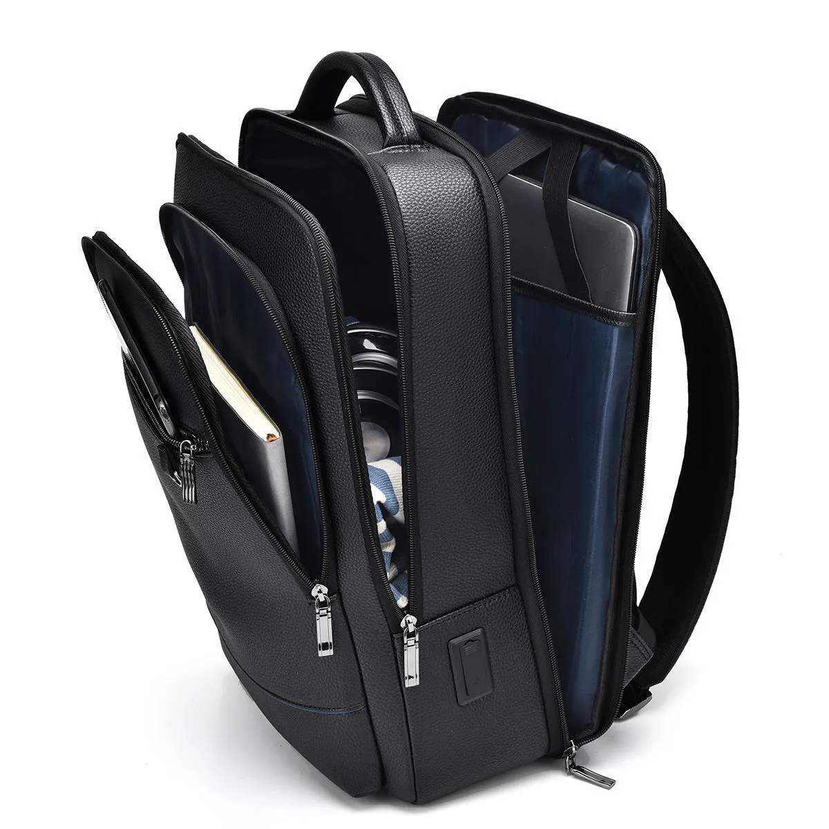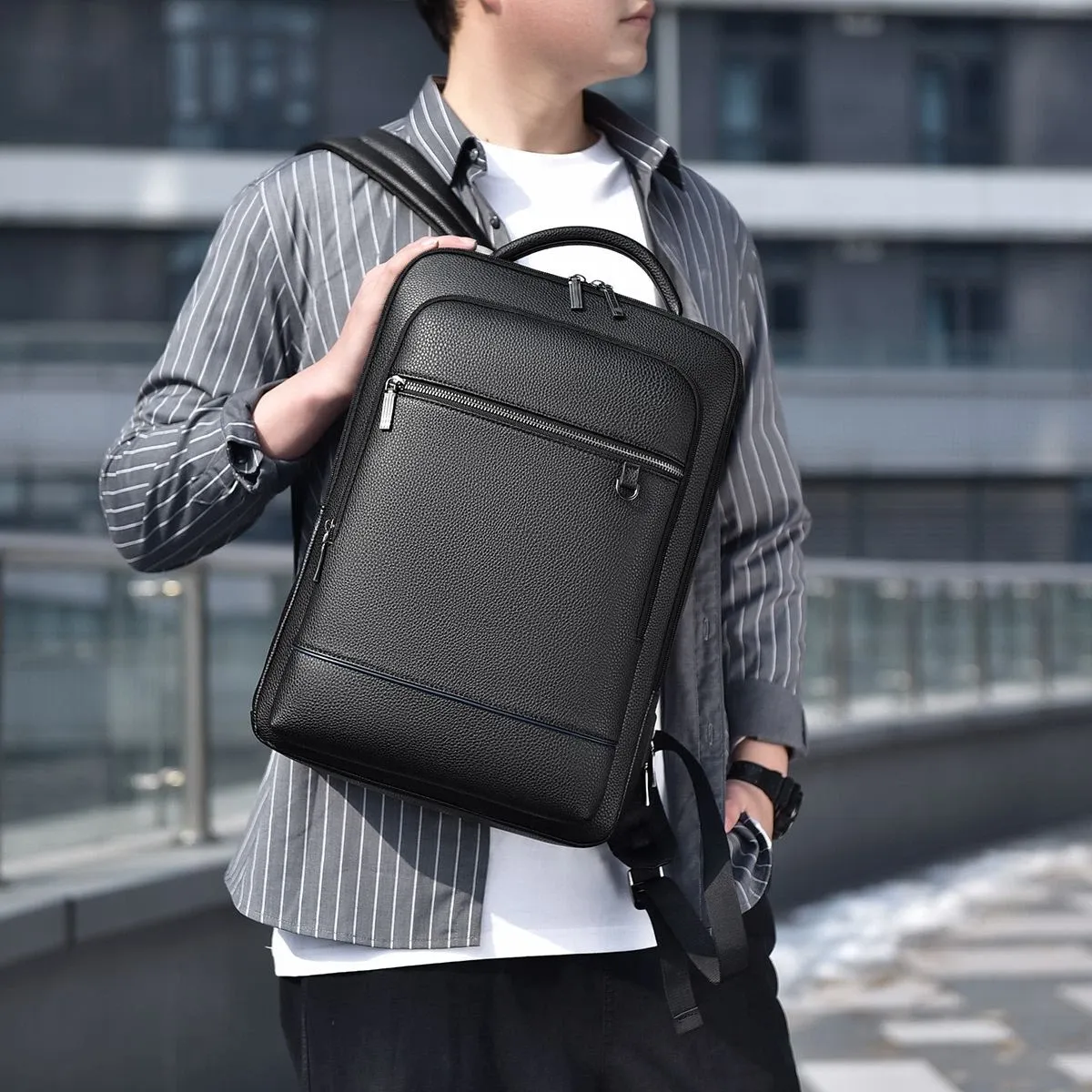 Elevate your everyday carry with this sleek and durable black leather backpack, crafted for modern professionals and on-the-go individuals. Made from high-quality textured PU leather, this backpack combines sophisticated style with practical functionality.