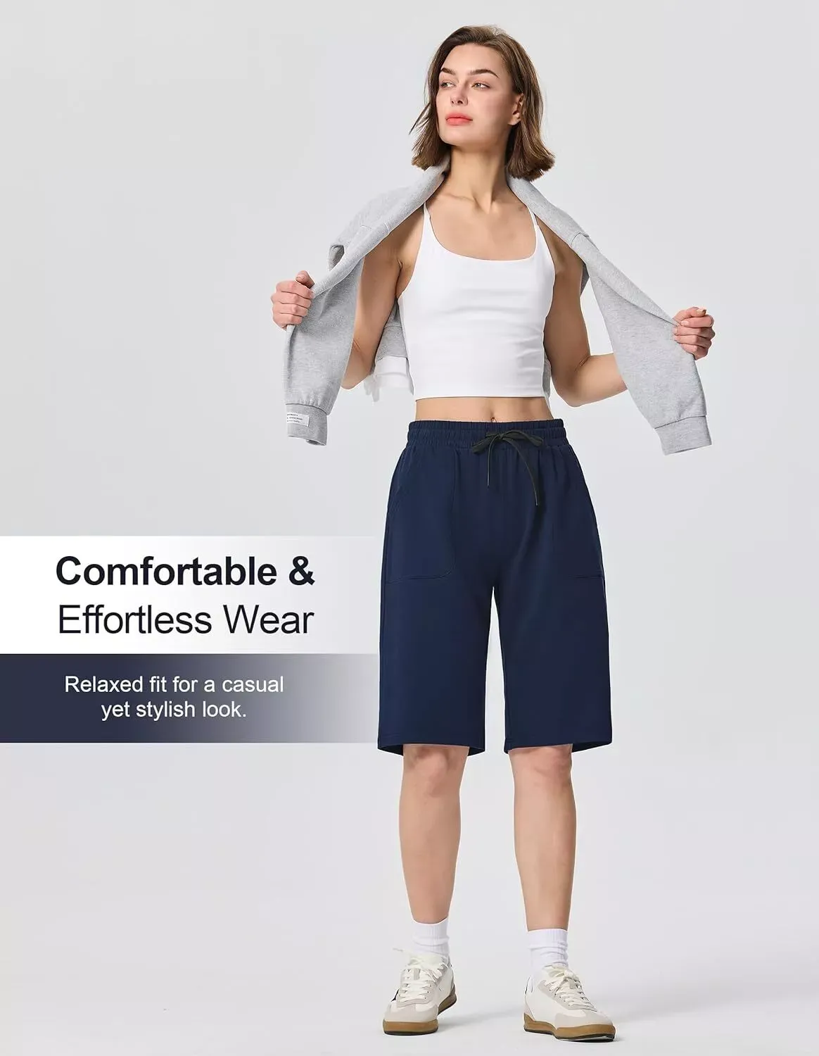 Athletic and Lounge Shorts – Our women’s bermuda shorts feature a relaxed fit throughout the hips and thighs, allowing for flexible movement during your workout. Our high waisted stretch sweat shorts also great to lounge in or wear as your workout clothes