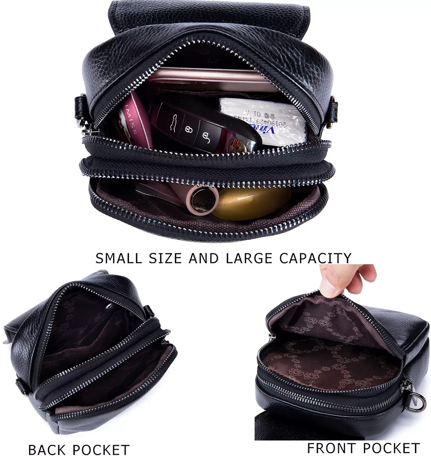 * Big enough to fit a wallet and large cell phone – This small crossbody bag is an