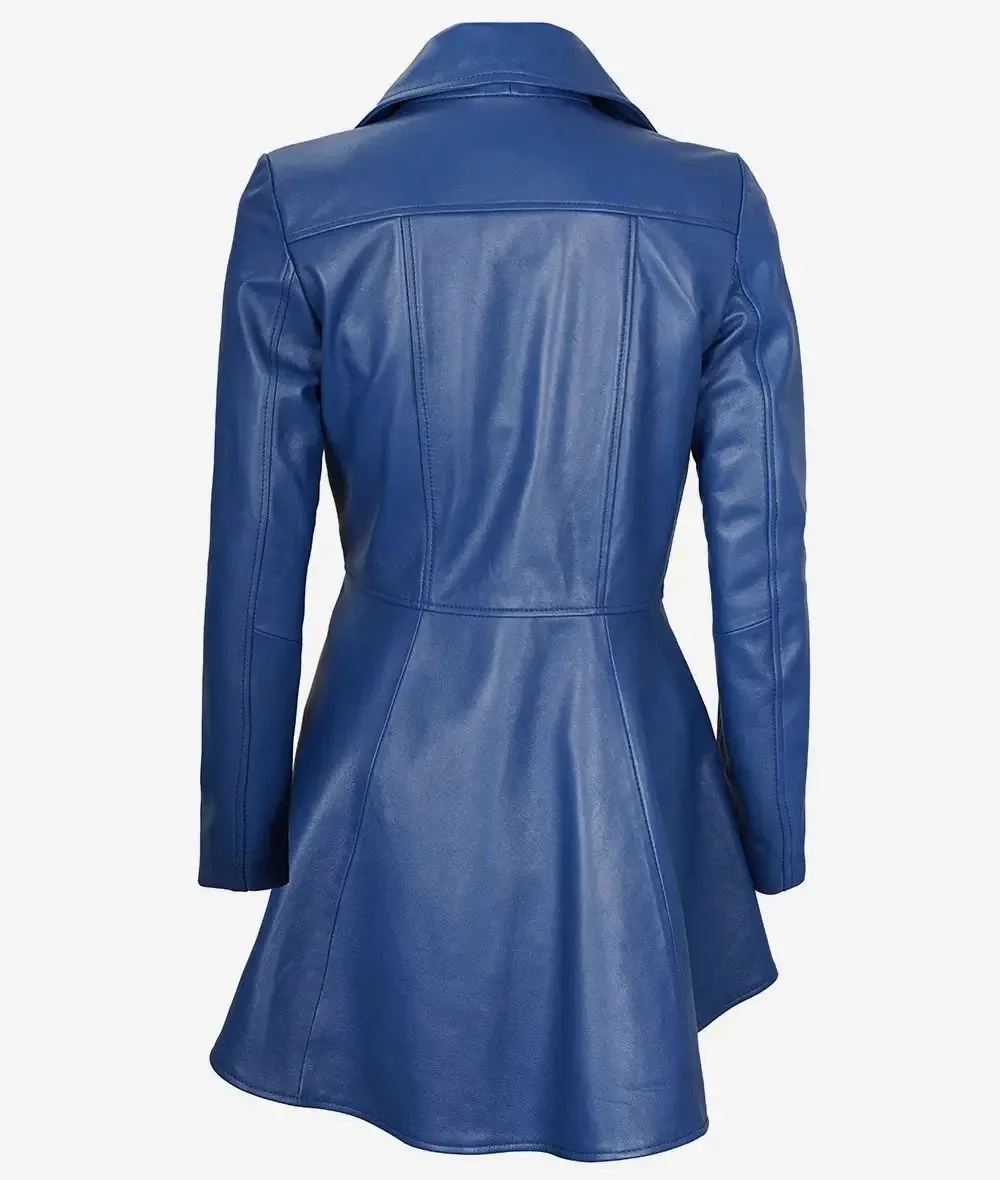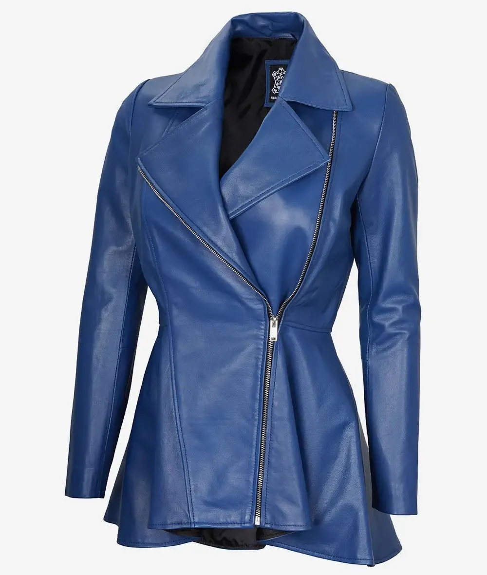 Women’s New Slim Fit Moto Biker Genuine Sheepskin Blue Leather Peplum Jacket