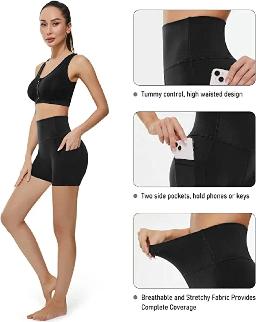 Women’s Yoga Shorts High Waist Biker Shorts with Pockets Running Short Leggings